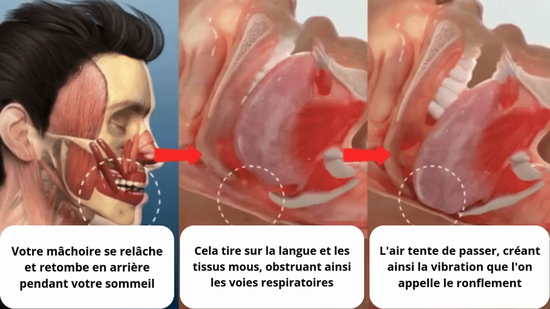 La cause principale du ronflement est la relaxation de votre mâchoire, qui tombe vers l'arrière pendant votre sommeil.