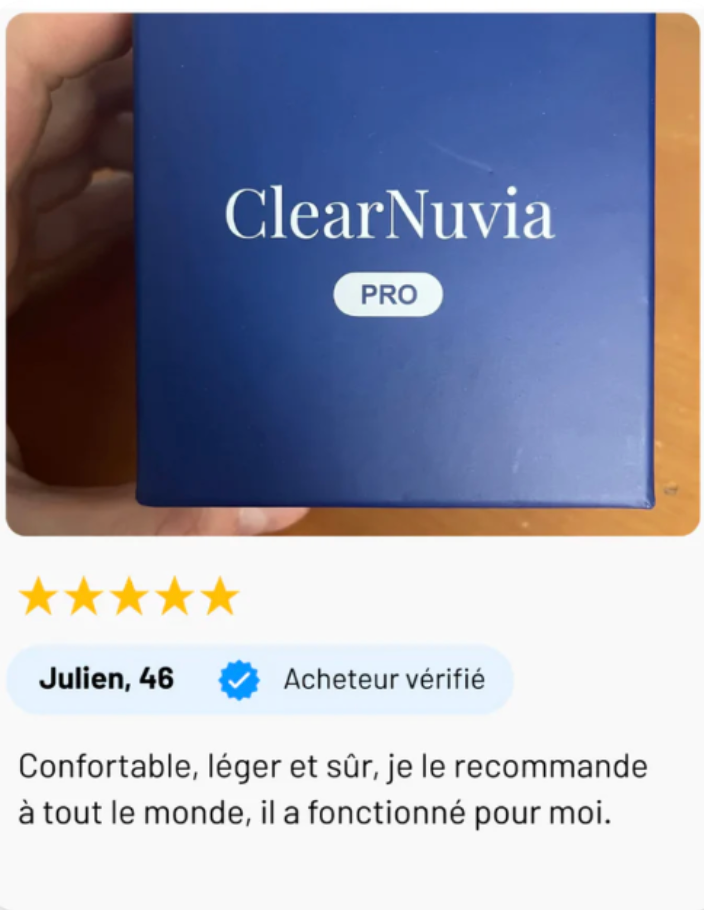 Avec NuviaClear™, vous profitez d'une meilleure nuit de sommeil, d'une productivité booster, d'un système immunitaire renforcé, et vos relations s'améliorent. Il diminue même le risque de maladies cardiaques et d'accidents vasculaires cérébraux !