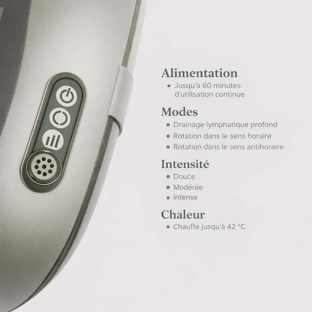 Son utilisation régulière, associant massage passif et chaleur contrôlée, contribue à favoriser le relâchement musculaire et le confort du cou et des épaules, en complément de bonnes habitudes posturales. »